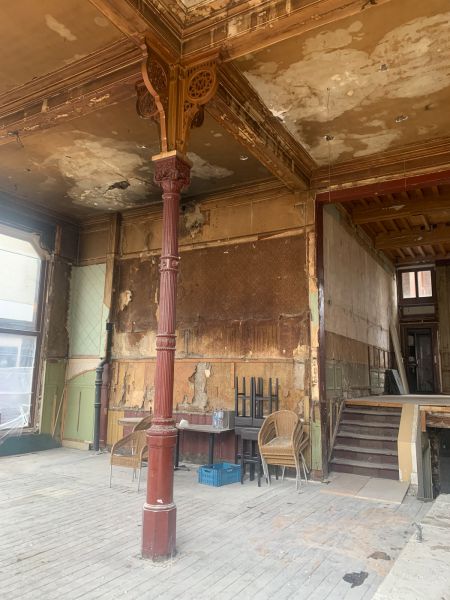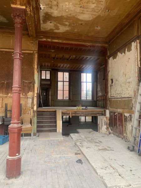 Wat je je hierbij moet voorstellen? Maarten renoveerde samen met Stadsherstel de gevel en de binnenkant; wat het vroegere Franse café uit 1900 in een nieuwe jas heeft gestoken. Het rijksmonument dateert uit de zeventiende eeuw en is even oud als z’n Boterwaag-broertje aan de overkant. Kan alleen maar gezellig worden.