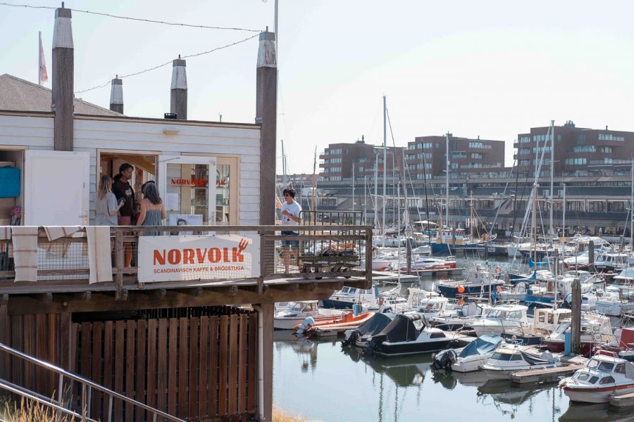 De iet wat verstopte bakkerij achter de haven werd een hit: de rij steeds langer, de toonbank steeds voller, dus stond een verhuizing op de planning. Tijd voor een écht cafe: ‘Norvolk’. Eén minuut van de plek waar het allemaal begon, aan de Kranenburgweg, mét uitzicht over de haven. De meest verrassende Scheveningse hotspot, als je het ons vraagt. Voor al je ontbijt- en lunchwensen, in het Zweeds.