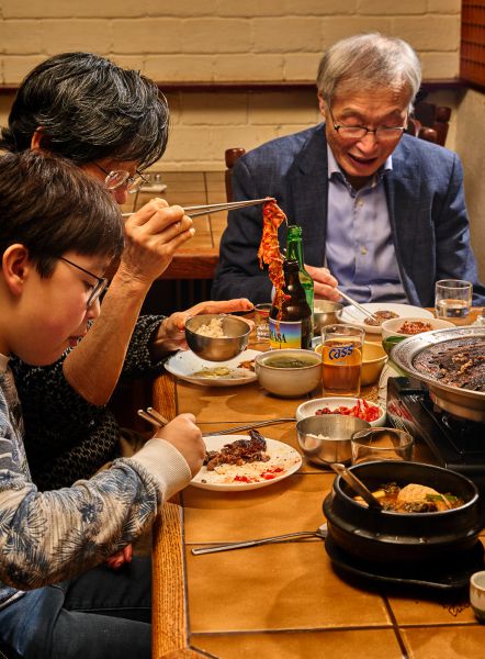 Min en Yoo, 78 en 87 jaar oud, vlammen nog steeds vijf dagen per week in hun eigen zaak. Het voelt daarom alsof je bij ze thuis aanschuift. Bij de Koreaanse familie, die je hiervoor nog niet had. Het enige verschil: reserveren is een must, dat zegt genoeg natuurlijk. De menukaart is klein en ook dát zegt genoeg. Met authentieke gerechten als kimchi, pajeon(bosui-pannenkoek), bulgogi (dunne lapjes rundvlees) heb je namelijk genoeg om je vingers bij af te likken.