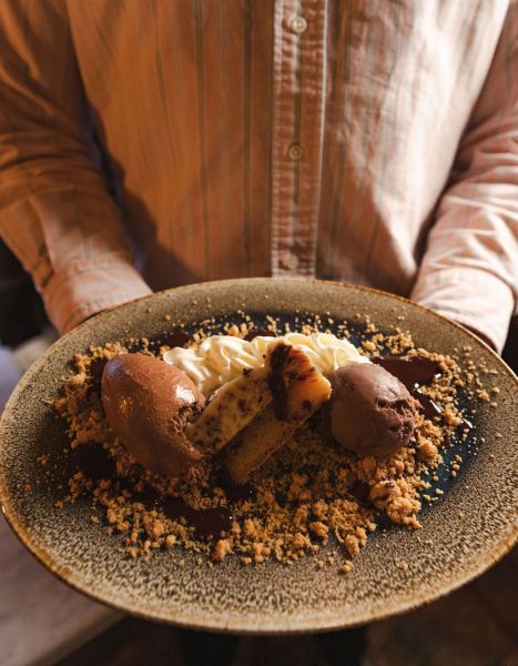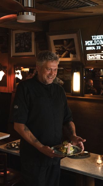 ‘Je gaat uit drinken en je eet wat’, is het motto van Max en Ira, die de bruine kroeg in 2022 nieuw leven inblazen. Altijd spannend, zou je denken: een bar middenin een woonwijk, aan een levendig plein, op een idyllisch en boomrijk hoekje. Bleek niet zo te zijn. Authentieke details, een buurthuis-sfeer én goede happen komen moeiteloos samen op het Koningsplein.