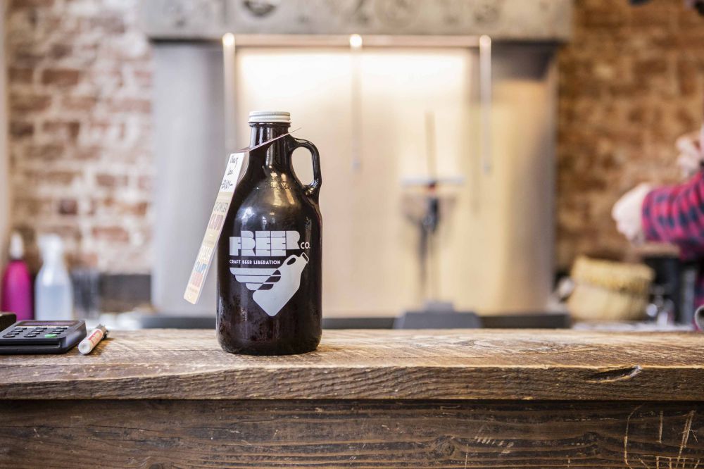 Als je het over bier hebt, heb je het ook over glazen flesjes. Die van 30cl en waar je met tassen vol mee stuntelt richting de glasbak. Zonde en onnodig, wat Free Beer Co betreft. Daarom kun je bij hen een herbruikbare fles kopen van een liter of het dubbele. Die fles, met de naam Growler, kun je laten vullen met één van de drie bieren die op dat moment op de tap staan. De Growler leeggedronken en weer toe aan een gevulde? In de zaak maken ze de fles grondig voor je schoon. Zo kun je de smaken van het nieuwe tapbiertje goed opnemen. Daarnaast heb je ook nog keuze uit niet-herbruikbare flessen en blikken bier. Inclusief vrolijk design.