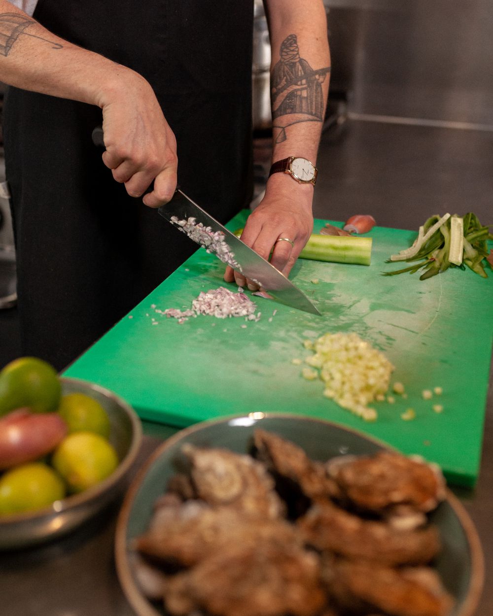 Het is inmiddels een begrip in Den Haag, Vincenzo’s Osteria op de Prins Hendrikstraat. Chefkok Daan staat er dagelijks in de keuken om klassieke Italiaanse gerechten te bereiden. Maar de kaart is niet alleen maar gevuld met traditionele gerechten. Sommige zijn simpelweg per toeval ontstaan. Op de camping bijvoorbeeld. Zoals de vinaigrette voor oesters. Dit is het recept.
