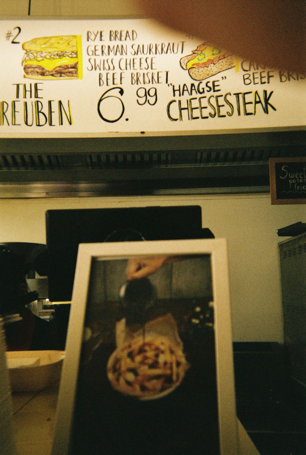 ''Dit is bij Day Dream, in de Prinsestraat. Het is een beetje Amerikaans/Canadees georiënteerd, maar dan met gerechten die je normaal niet zo snel tegenkomt. Hun signature dish is brisket: dungesneden rundvlees dat extra lang gegaard wordt om het goed mals te maken. De man op de foto ken ik niet persoonlijk, behalve dat we op Instagram fan van elkaar zijn. Ik stuur hem altijd dat ik zijn eten lekker vind, en hij stuurt terug dat hij mijn foto’s vet vindt.”