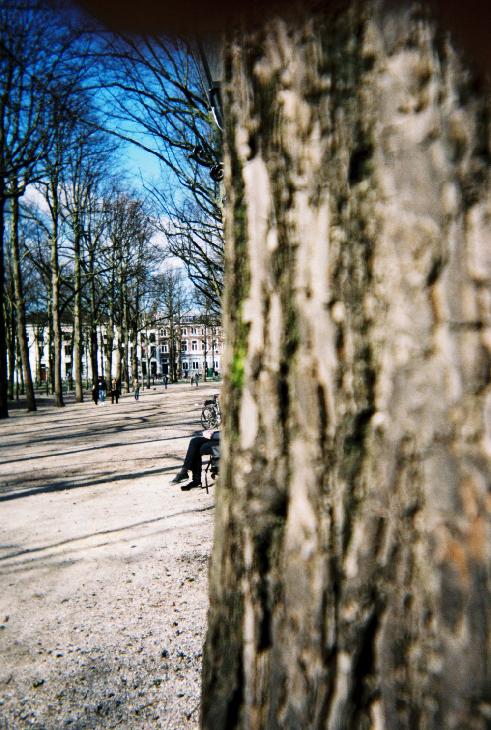 “Ik ben begonnen in het centrum van Den Haag. Voor een bruiloftshoot maak ik vaak een rondje Den Haag met alle typische kenmerken, dus die route heb ik aangehouden. Over bruiloften gesproken: hier op de Denneweg ben ik zelf verloofd met mijn vrouw! Tussen de bomen ben ik op mijn knieën gegaan.”