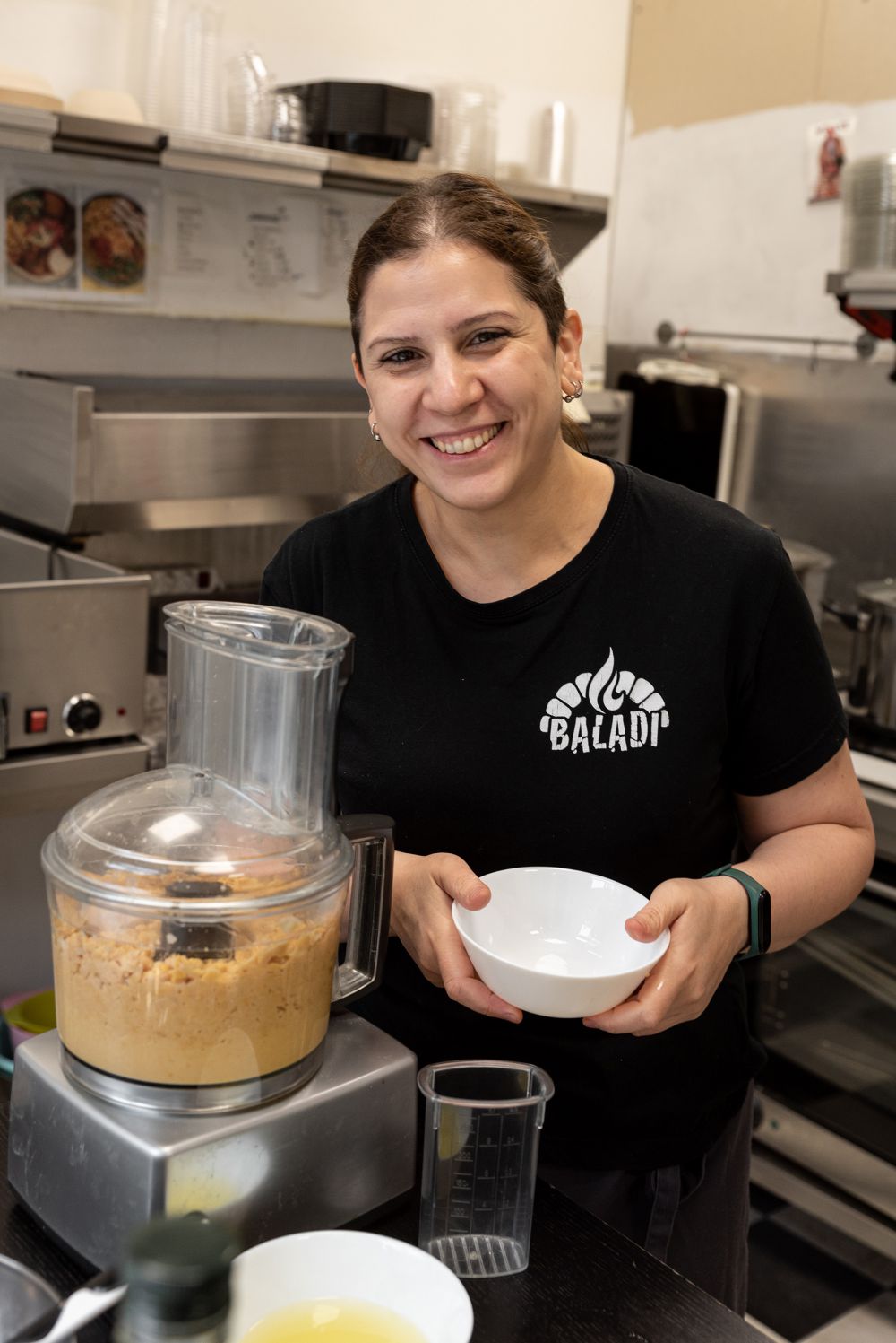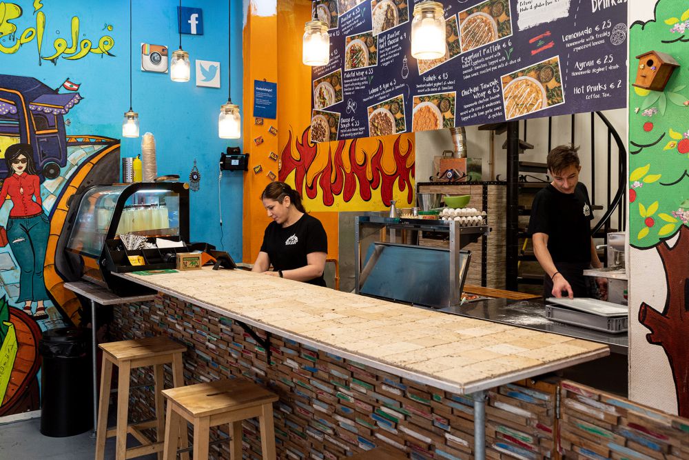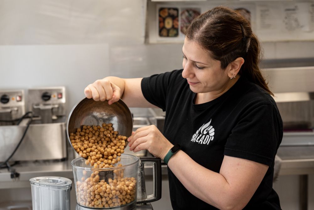 In de kleurrijke bakkerij maken Ali en Maha huisgemaakte flatbreads, inclusief toppings die je niet zo vaak ergens anders tegenkomt. Beiden komen uit Libanon, en hebben de traditionele smaken meegenomen toen ze emigreerden naar Nederland. Door middel van een crowdfunding konden ze hun droom verwezenlijken: een eigen streetfoodbar. Met goed eten, voor niet al te veel geld. En daar hoort het bijgerecht hummus dus ook bij. Dit is hoe je ‘m op de Baladi-manier maakt.