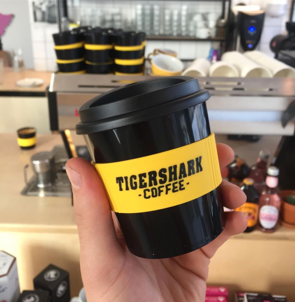 “Zo blij als we zijn met gasten die take-away bakkies komen halen, zo veel pijn doet het om te zien hoeveel bekertjes en dekseltjes in de prullenbak verdwijnen’’ Dus bedacht Vincent Zwaan van Tigershark een oplossing. Koffiebekers met statiegeld. Die staan voor kwaliteit!