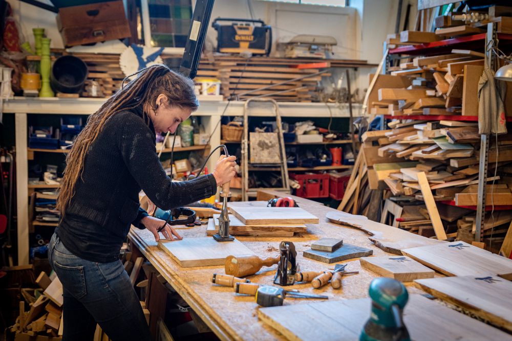 Het Meisje met de Zaag maakt haar borrelplanken van Haags hout