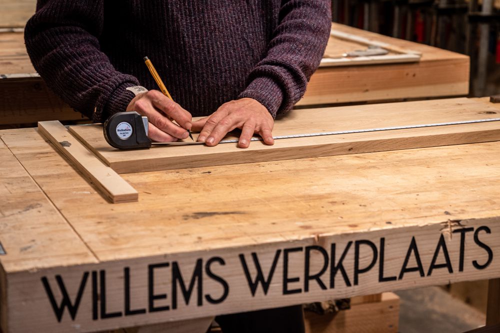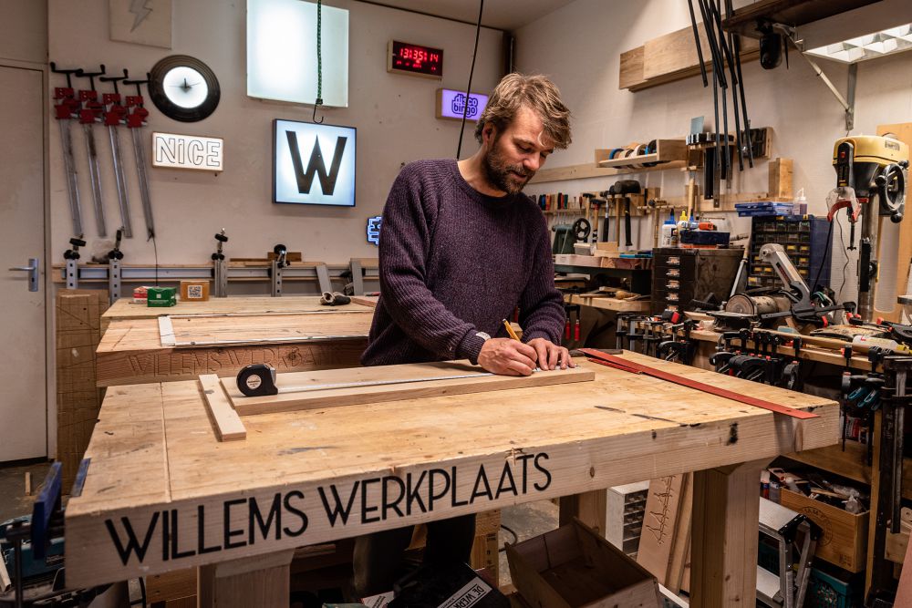 Ook zijn eigen werkbanken heeft Willem zelf gemaakt